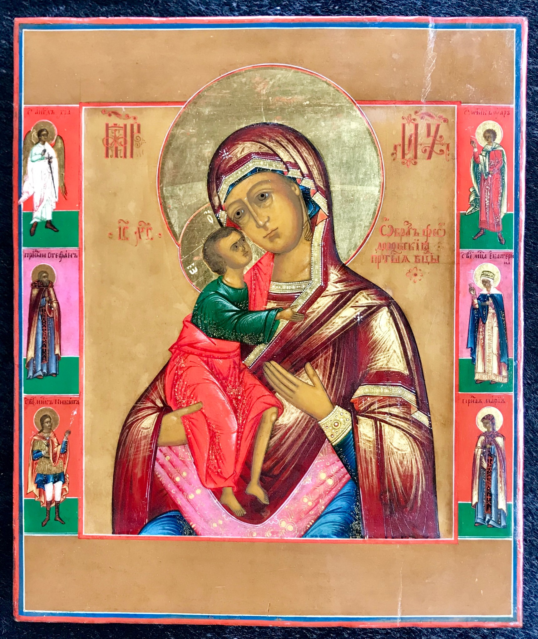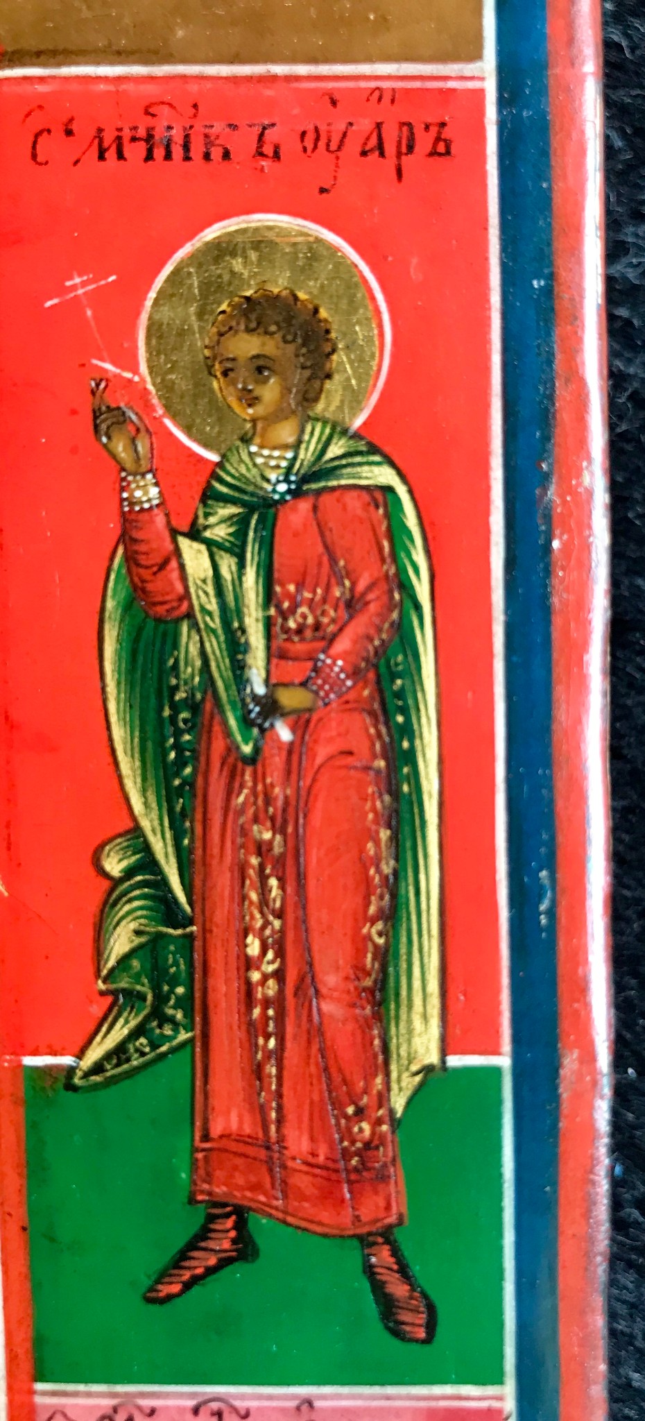 С предстоящими: Ангелом-Хранителем, Преподобным Стефаном, Св.Великом. Никитой, Св.Уаром, Св.Екатериной и Преподобной Мартой. Киотное состояние. Размеры: без киота - 26х31 см; с родным киотом - 41,5х46 см. Старообрядцы Подмосковья, Россия, XIX в. Наличие и стоимость уточняйте.Наличие и цену уточняйте.