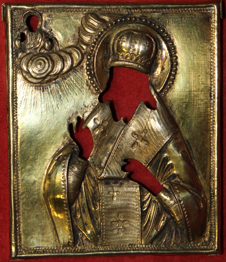 Нет в наличии. Оклад, клеймо "АС", клеймо "АОП", клеймо "1776 АА",пробирное клеймо Москвы "Георгий Победоносец". Доска/темпера, 8,5х10 см. Россия (Москва),18 век