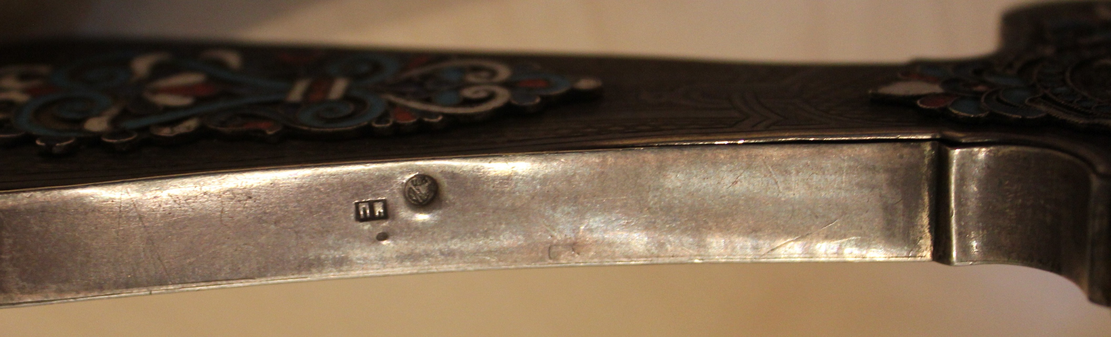 Очень красивый православный Напрестольный крест, изготовленный в России в 19 веке. Крест имеет большой размер, его высота составляет 33 см., вес 442 гр., штамп, литьё, золочение, перегородчатая эмаль, гильошировка, резьба. Клеймо мастера "ПН" Петр Никодимов.