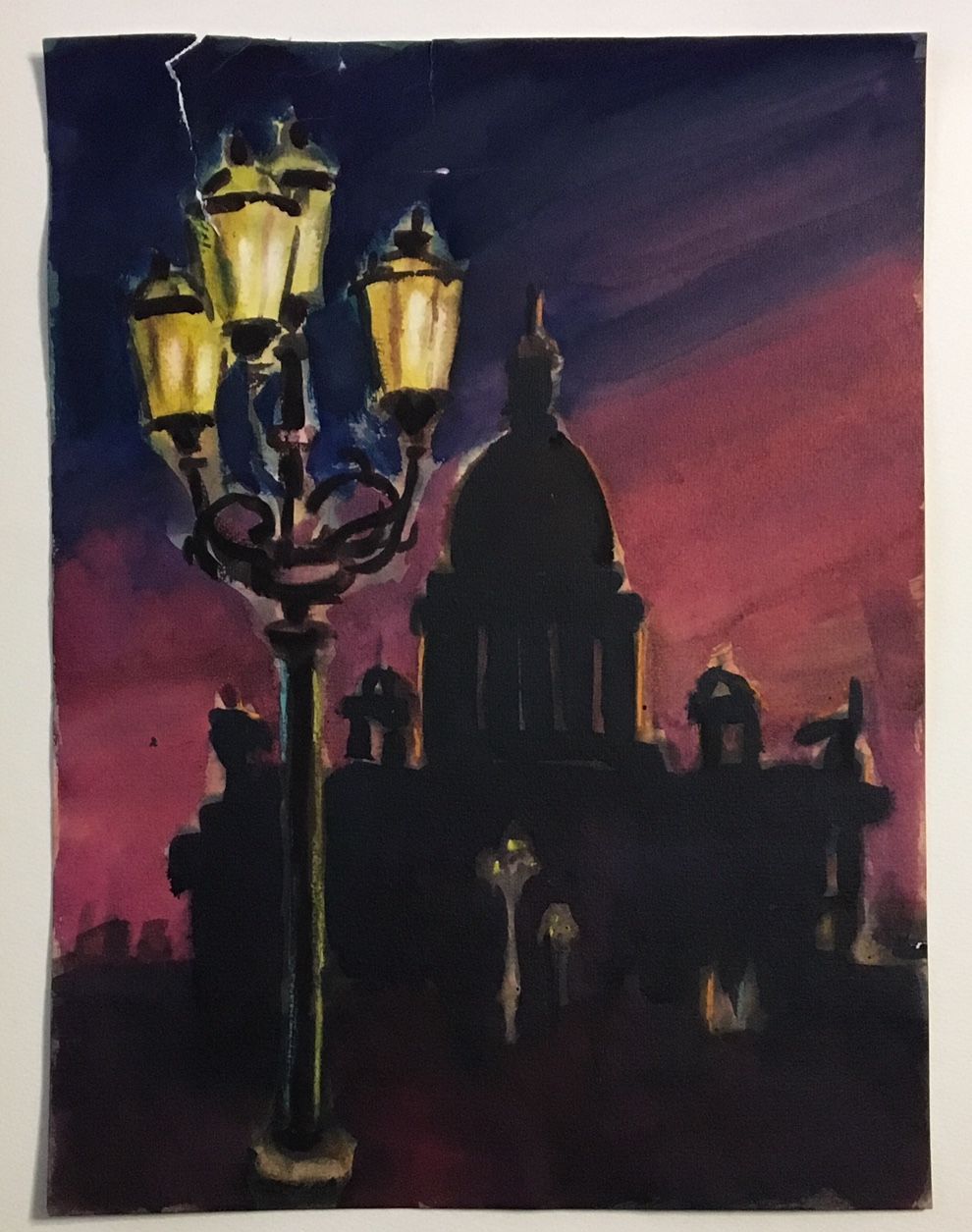 Художник: Звонков Иван Григорьевич (1924 - 2009 гг.) - непревзойдённый мастер колорита. Акварель, чуть порвана в верхнем левом углу (видно на фото). Размеры: 47,5х35,5 см. БССР, XX век.